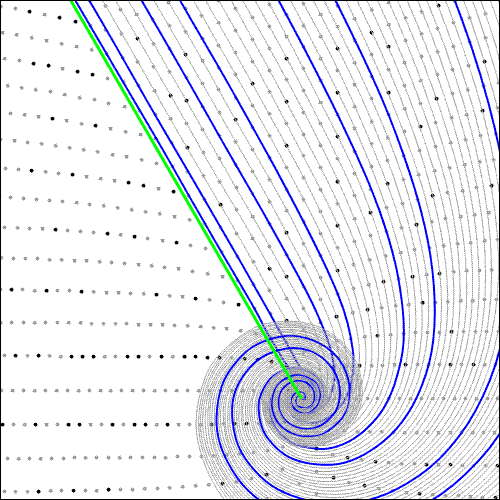| To draw the green line with Vortex, enter "ang 0" in the command window. To draw the blue curve, enter "s – 1". |
